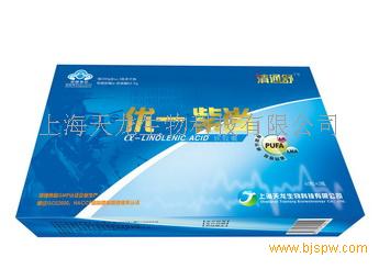 | 保健食品OEM贴牌定制大包 -亚麻酸——欧米伽3脂肪酸母体优一®紫尚软胶囊——每100g含:α-亚麻酸62.5g 本品是以紫苏油、明胶、甘油、水为主要原料制成的保健食品,经动物功能和人体试食实... |