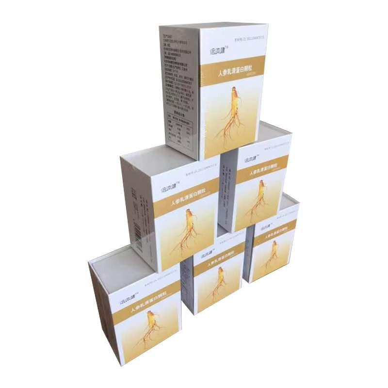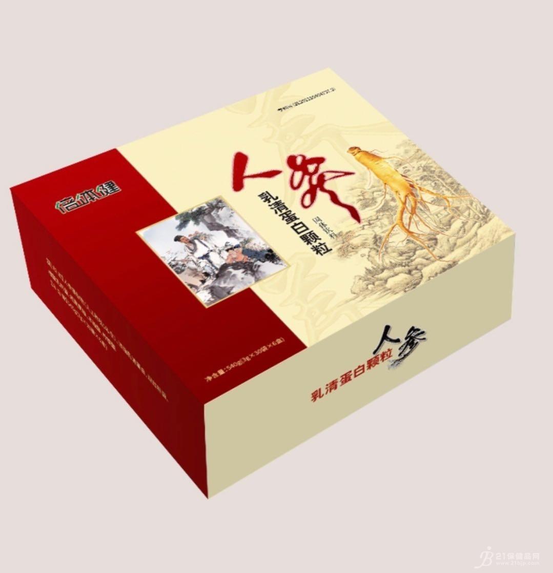 | 人参乳清蛋白颗粒招商配料:人参提取物(人工种植5年生)、浓缩乳清蛋白、双歧杆菌、嗜酸乳杆菌、低聚果糖、木糖醇、柠檬酸。产品特点: