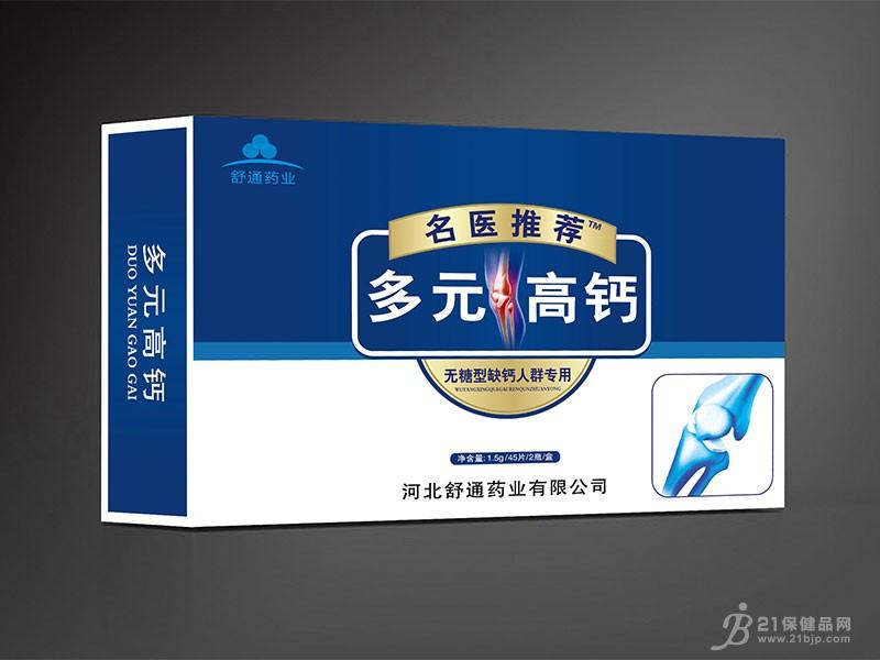 - 产品名称:多元高钙(无糖型)批准文号:SC11813040200143产品规格:1.5g/片产品剂型:片剂生产厂家:河北舒通药业有限公司用法用量:咀嚼食用,每日一次,一次一片成 份:乳矿物盐,硝酸氯钙,维生素d,牛骨胶原蛋白,葡萄糖酸锌,乳酸亚铁,壳聚糖,麦芽糊精,玉米淀粉,硬脂